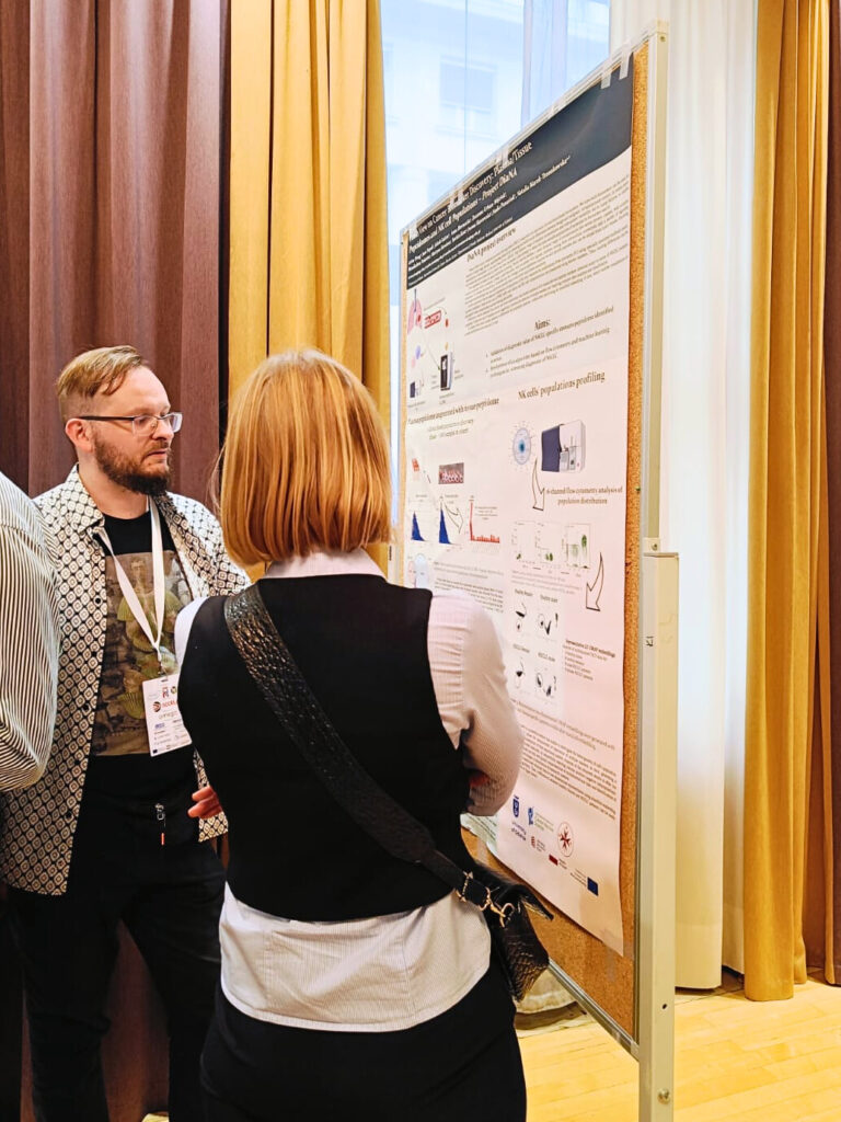 - Artur Piróg (“Fresh View on Cancer Biomarker Discovery: Plasma/Tissue Peptidomes and NK Cell Populations – Project DiaNA”) and Jakub Faktor (“Proteomic Interrogation of the T Cell Subset Activation Dynamics Reveals Subset Specific Membrane Signatures and Pathway Landscapes”) presented posters within the DiaNA project, focusing on innovative lung cancer diagnostics, including neoantigen identification and immunopeptidome analysis.