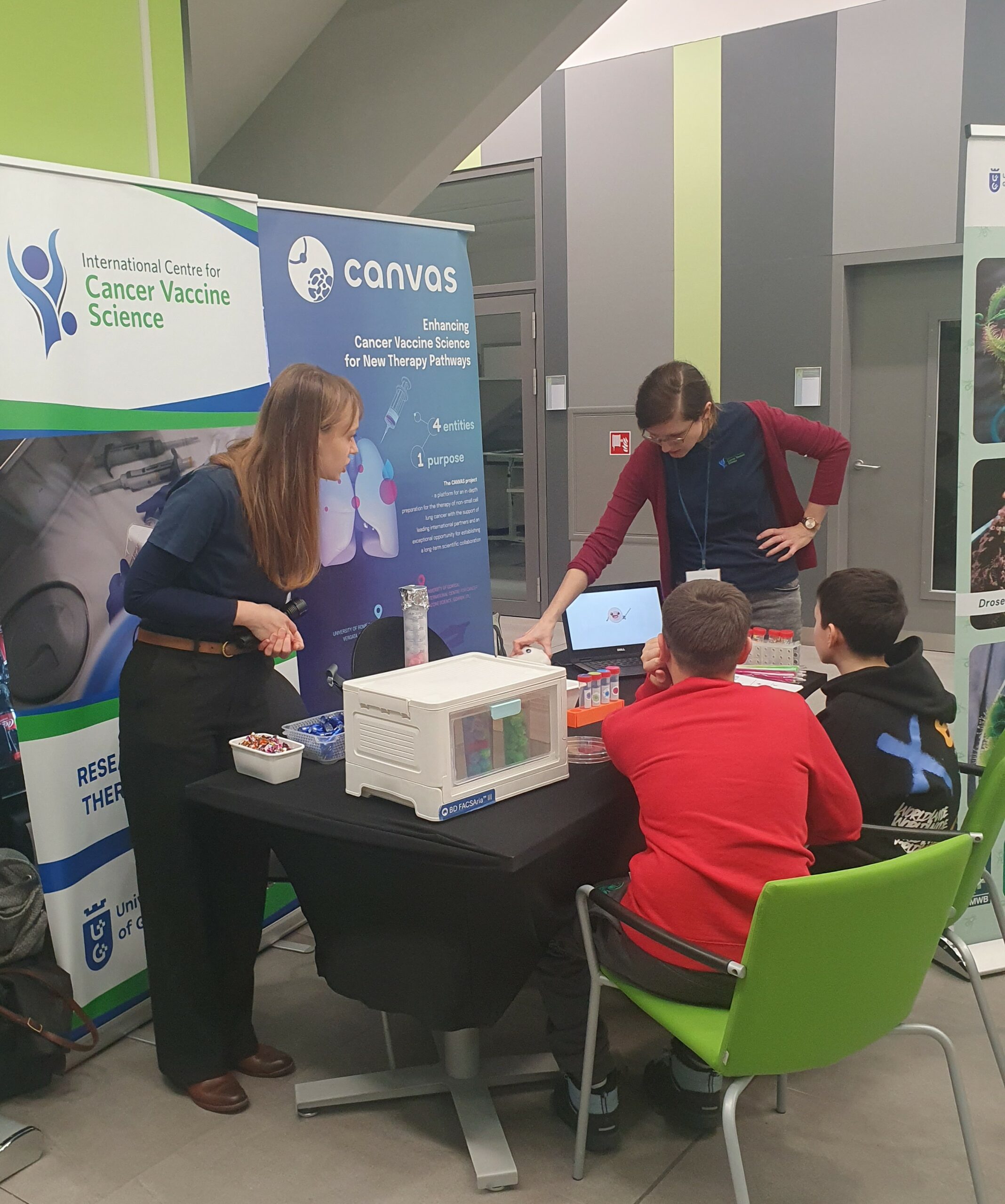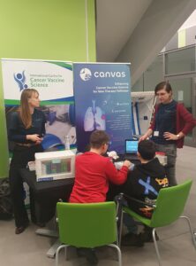 For our youngest visitors, we created a fun animated film that explained how immune cells fight diseases in our bodies. Aspiring young scientists had the chance to try their hand at using a model of flow cytometer and discover how to find cells that can protect us from cancer. Our researchers also shared stories about how these special cells could help develop life-saving targeted therapies for future patients.